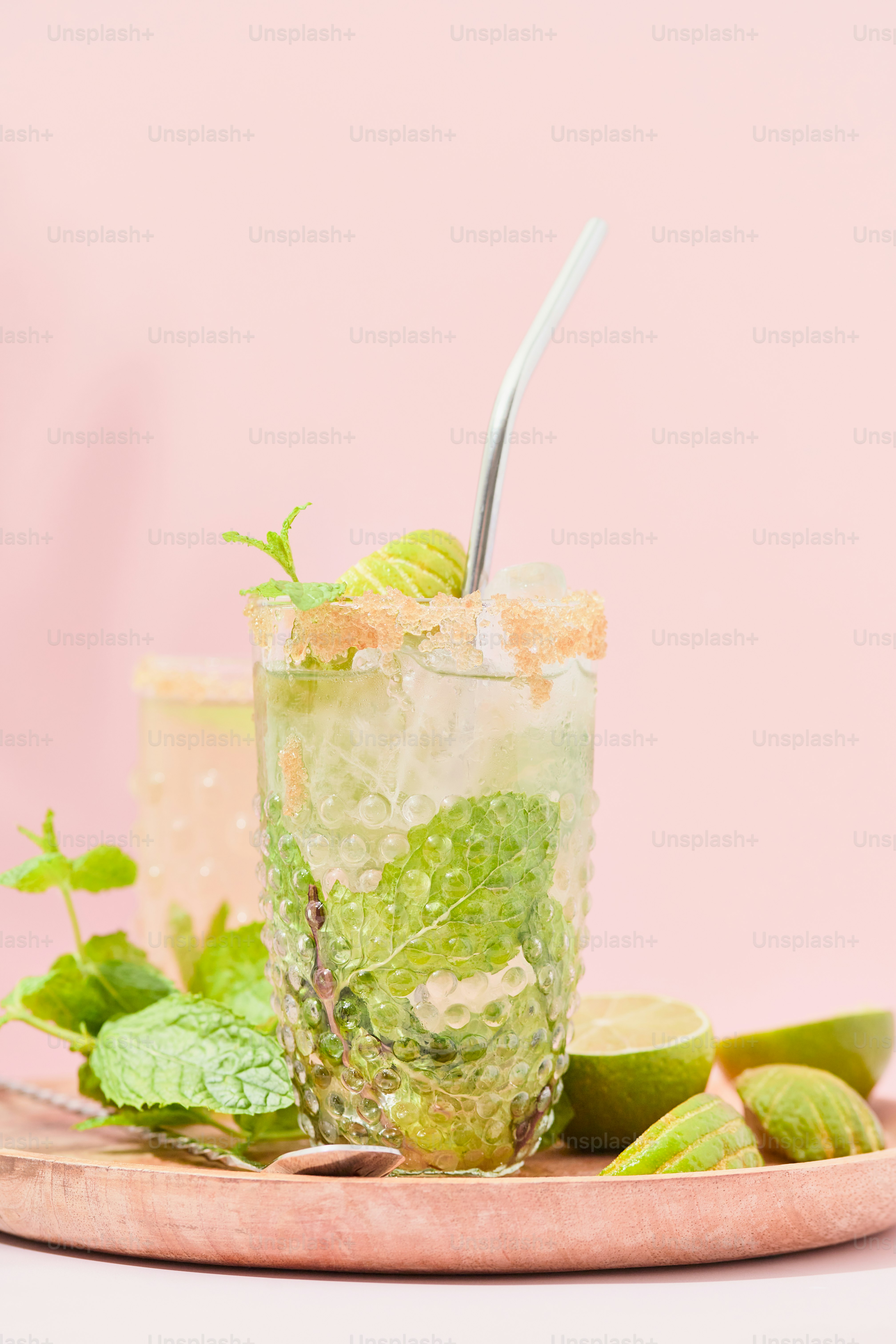 Two glasses of mojito with limes and mints